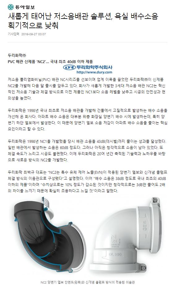 [동아일보] 새롭게 태어난 저소음배관 솔루션, 욕실 배수소음 획기적으로 낮춰 > [중문] NEWS