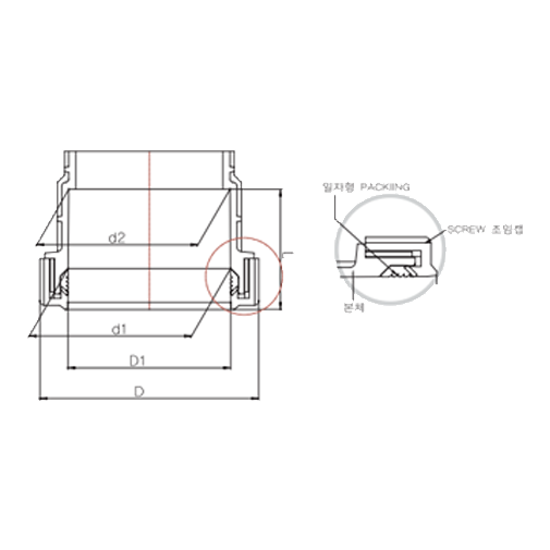 | 호칭지름 | d1 | d2 | L | D1 | D최대 |